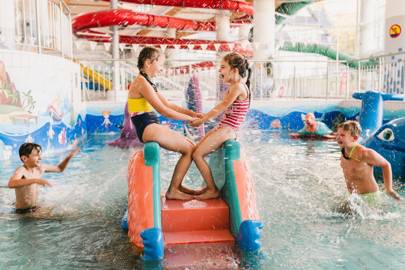 - wulkan wodny, wodna ścianka wspinaczkowa, „pływające liście” dla dzieci oraz basenik dla najmłodszych.