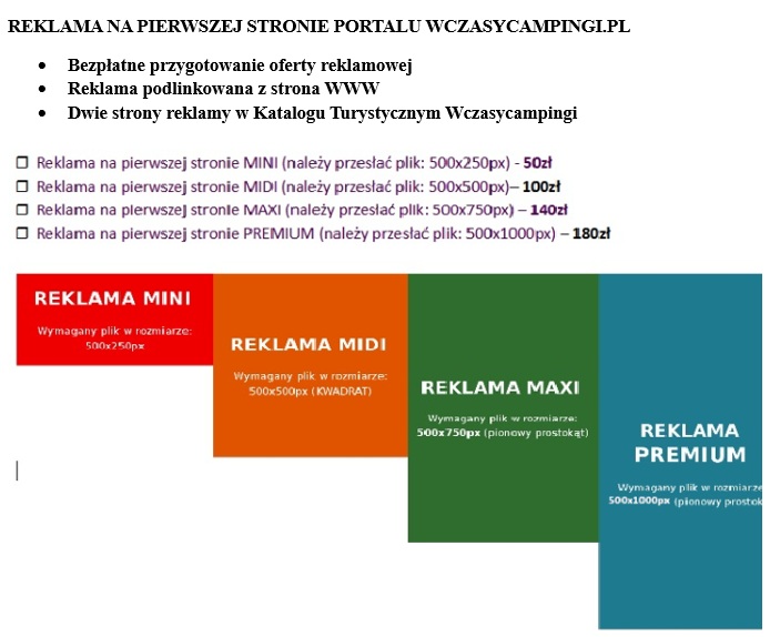 Polecamy dodatkowo reklamę na pierwszej stronie portalu w tym dodatkowa strona w katalogu turystycznym